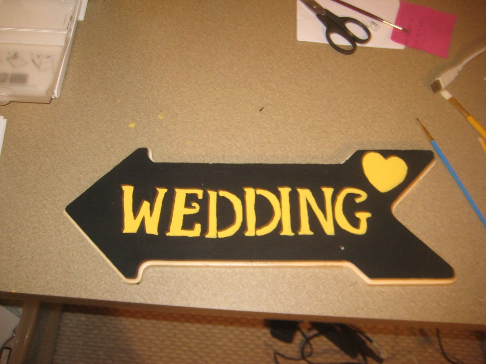 and lastly I wanted to make a wooden sign for the driveway entrance to the wedding. Its sort of a long driveway into the location and I really wanted something to put on the street for the guests to know they are in the right place. So I bought a wooden arrow for $6.00 and painted it with stencils